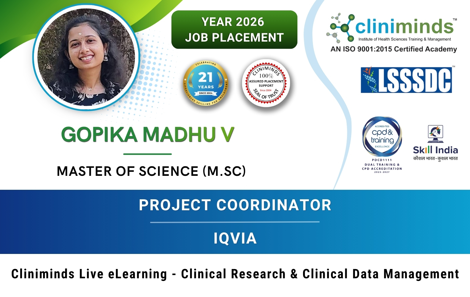 Cliniminds program is accredited by the Life Sciences Sector Skill Development Council (LSSSDC) and CPD Accredited - Continuing Professional Development, ensuring that our certification is recognized globally and adds significant value to our students’ career prospects.