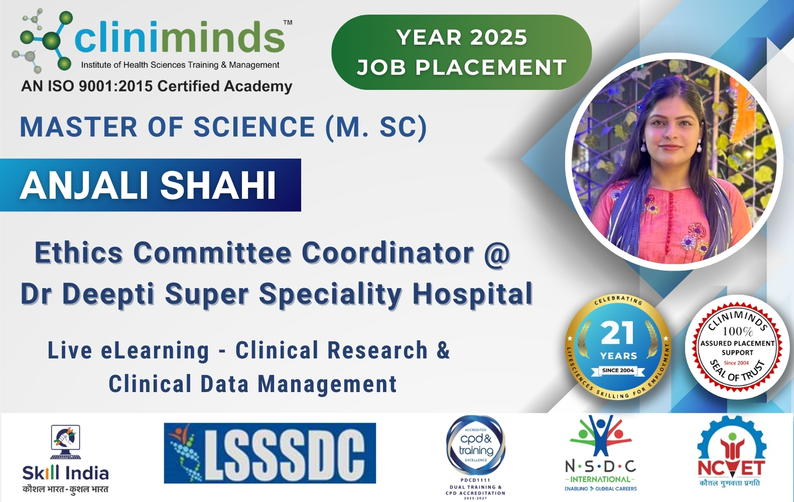 The Certificate Program in Clinical Research & Clinical Data Management is a comprehensive course offered by Cliniminds in agreement with the Life Sciences Sector Skill Development Council (LSSSDC). It provides participants with the skills and knowledge required to excel in the fields of clinical research and data management. Upon successful completion, participants receive a certification from LSSSDC and a Post Graduate Diploma from Cliniminds.