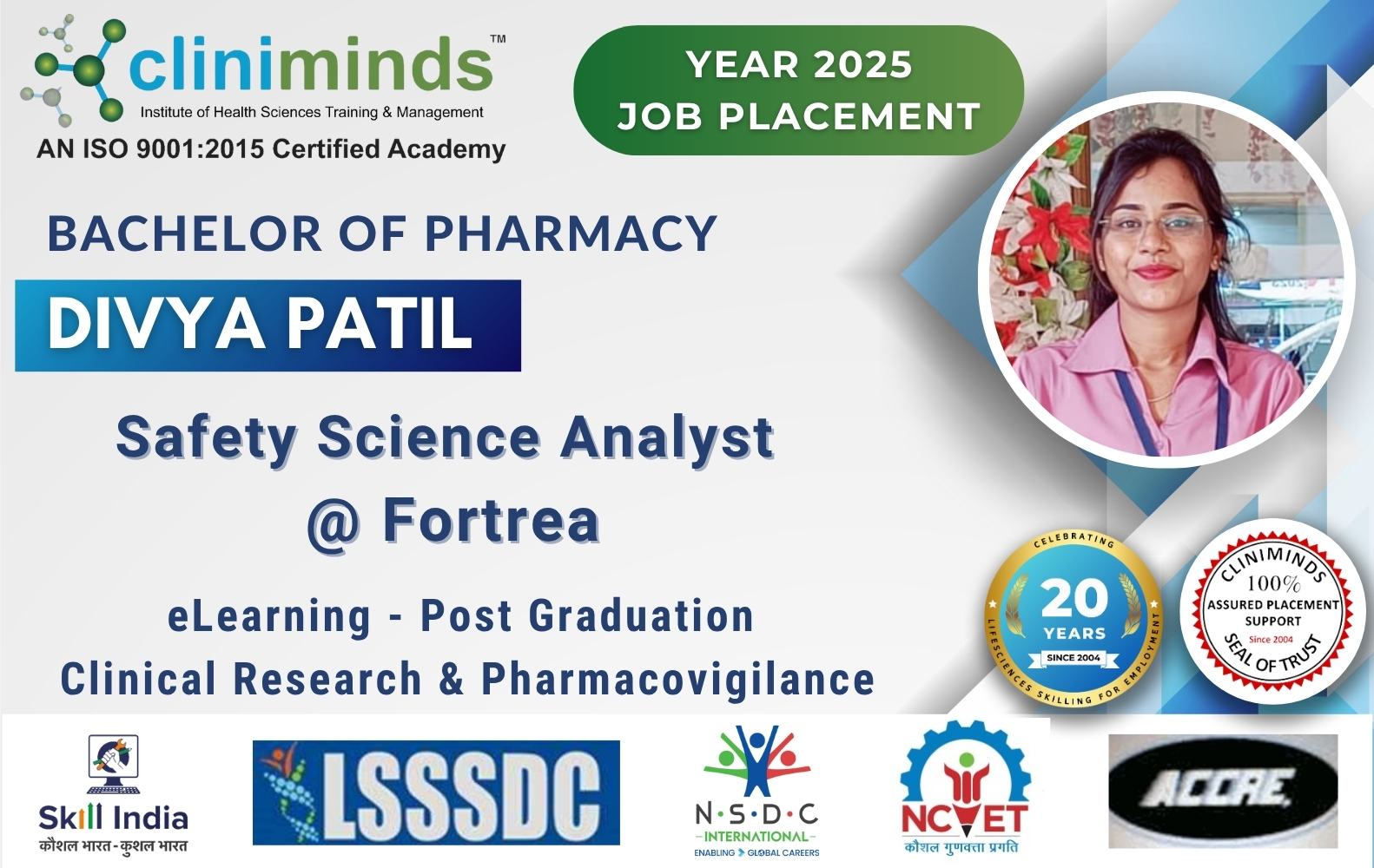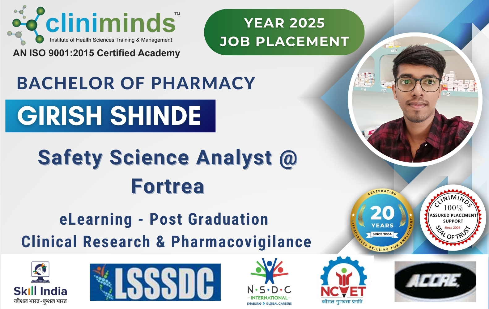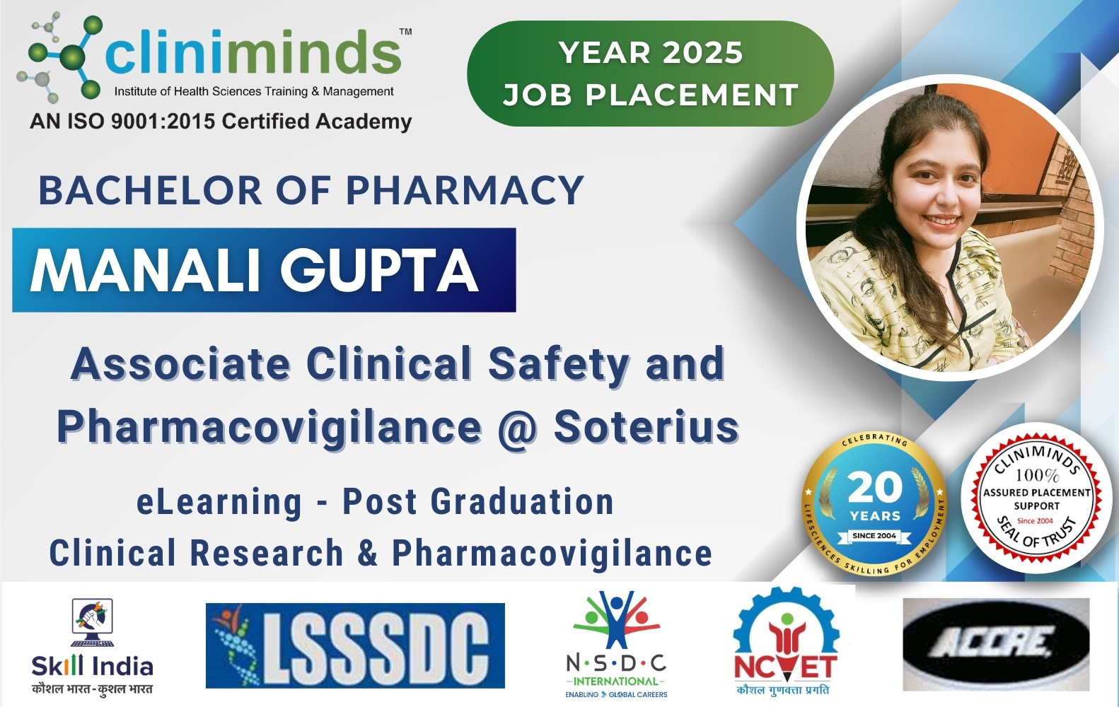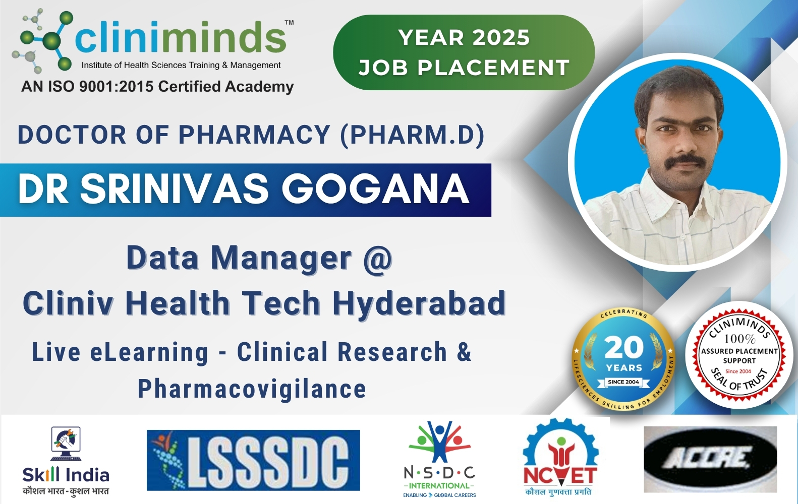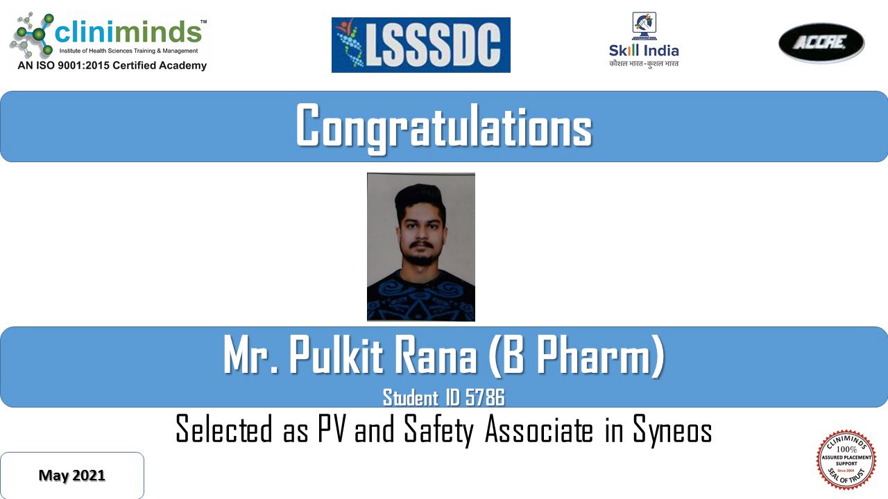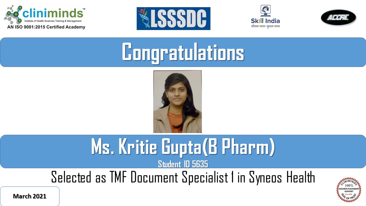 Cliniminds – www.cliniminds.com – Established in 2004, offers job-oriented, upskilling, and professional training programs in the life sciences sector. Our programs cover areas such as clinical trials, pharmacovigilance, data management, business analytics, medical writing, regulatory affairs, and other specialized fields. Cliniminds has an alumni of over 11,500+ professionals from India, the US, Europe, the Middle East, Africa, and Latin America. Our programs are accredited and certified by the Life Sciences Sector Skill Development Council, Ministry of Skill Development & Entrepreneurship, and the Accreditation Council for Clinical Research Education, USA.