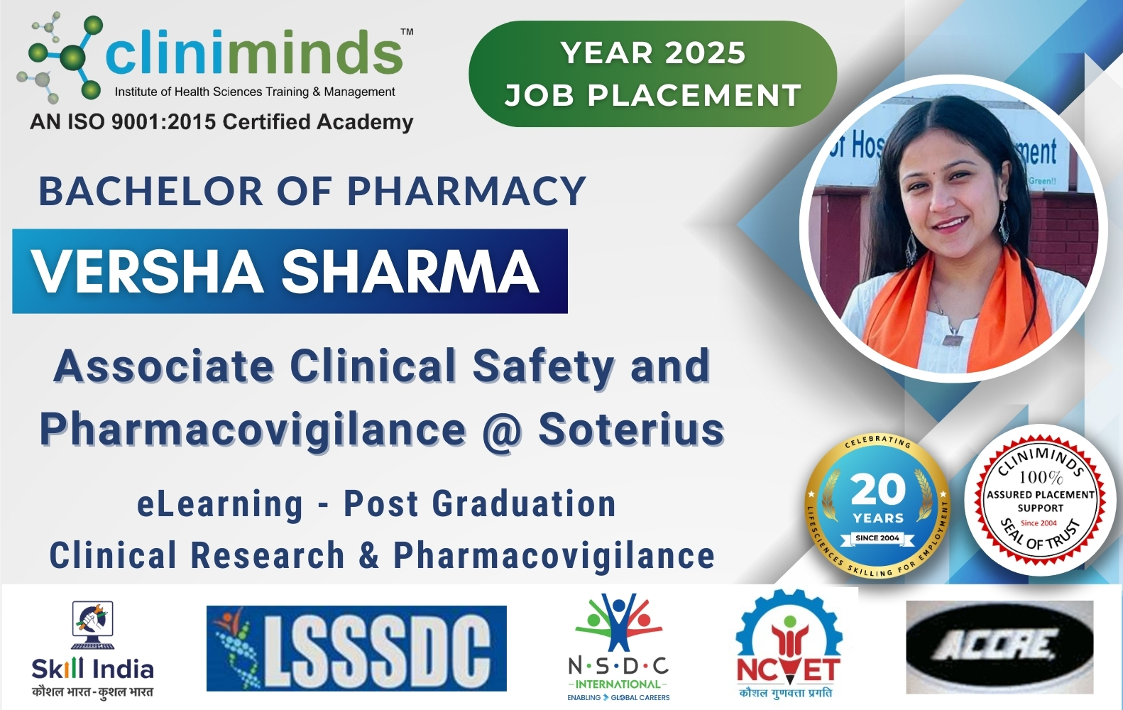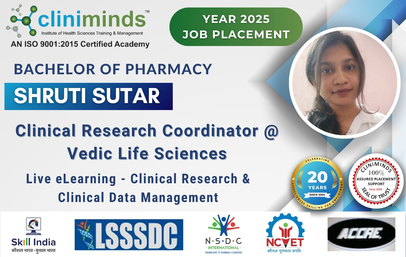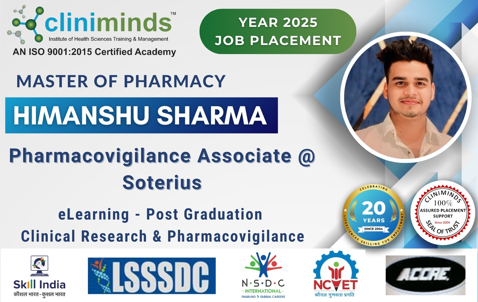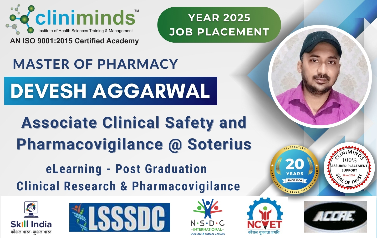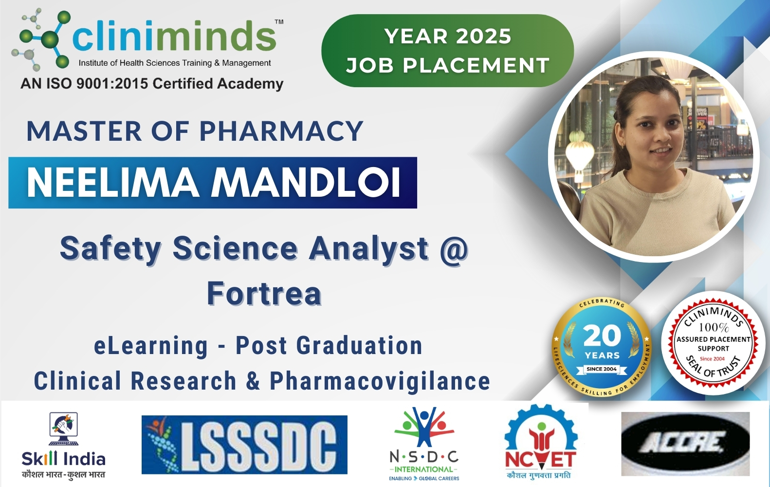 Cliniminds – www.cliniminds.com – Established in 2004, offers job-oriented, upskilling, and professional training programs in the life sciences sector. Our programs cover areas such as clinical trials, pharmacovigilance, data management, business analytics, medical writing, regulatory affairs, and other specialized fields. Cliniminds has an alumni of over 11,500+ professionals from India, the US, Europe, the Middle East, Africa, and Latin America. Our programs are accredited and certified by the Life Sciences Sector Skill Development Council, Ministry of Skill Development & Entrepreneurship, and the Accreditation Council for Clinical Research Education, USA.