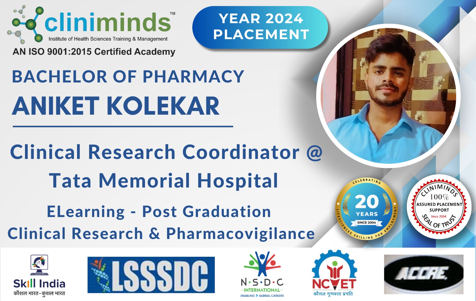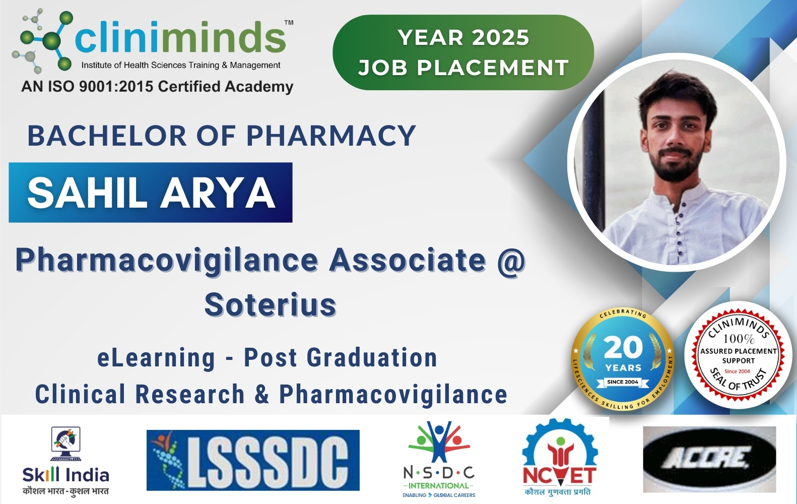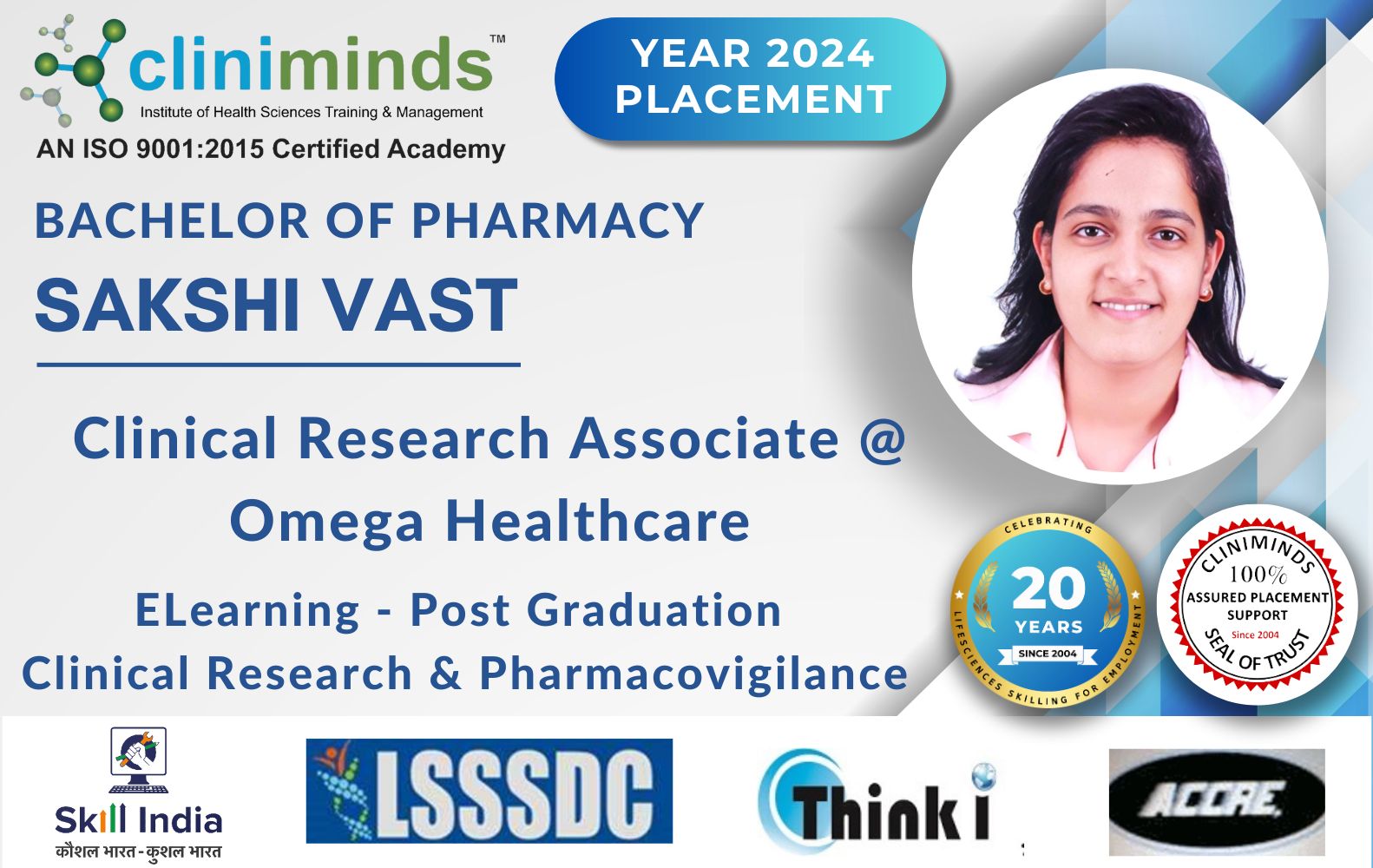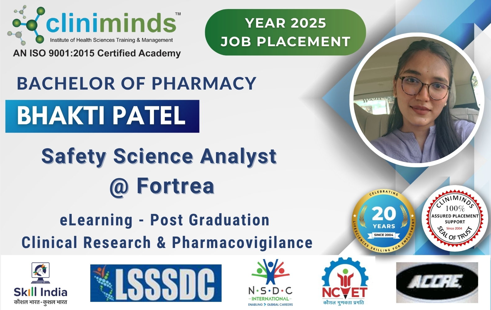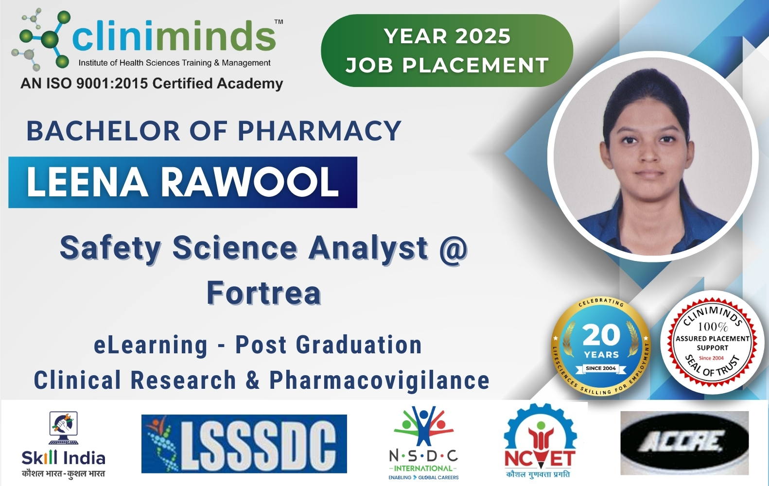 Cliniminds – www.cliniminds.com – Established in 2004, offers job-oriented, upskilling, and professional training programs in the life sciences sector. Our programs cover areas such as clinical trials, pharmacovigilance, data management, business analytics, medical writing, regulatory affairs, and other specialized fields. Cliniminds has an alumni of over 11,500+ professionals from India, the US, Europe, the Middle East, Africa, and Latin America. Our programs are accredited and certified by the Life Sciences Sector Skill Development Council, Ministry of Skill Development & Entrepreneurship, and the Accreditation Council for Clinical Research Education, USA.